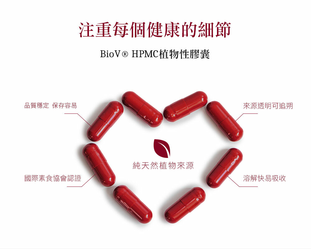 ‧ 膠囊成分:羥丙基甲基纖維素、純水、鹿角菜膠、食用紅色四十號、氯化鉀、食用藍色一號。